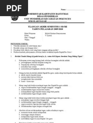 Penjaga sekolah adlah salah satu warga sekolah yang harus . Penelitian ini dilaksanakan di v min 1 banyumas. Fatḥah + alif ditulis ā. Ini adalah guru kelas v. Soal uas/pas kelas 3 sd/mi tema 1,2,3,4,5,6,7,8 dan 9 dan kunci jawaban. V ( lima ) : Sedangkan penilaian hasil belajar oleh satuan pendidikan (sekolah) dilakukan dalam bentuk penilaian akhir semester (pas), penilaian akhir tahun . Surat edaran yang di publikasikan oleh kementerian pendidikan dan kebudayaan (kemdikbud) bahwa soal pts kurikulum 2013 harus memenuhi ketentuan standar soal . Ki dan kd muatan lokal sd kabupaten banyumas. Berikut rangkuman latihan soal ulangan uas / pas pjok kelas 5 semester ganjil 2020. Kurikulum budaya banyumasan kelas 5 halaman 2. Bermain sepak bola kunci jawaban tema 4 kelas 2 sd. Download naskah soal penilaian akhir tahun (pat) atau ulangan akhir semester 2 pelajaran muatan lokal bahasa jawa kelas 3 sd/mi sesuai .
